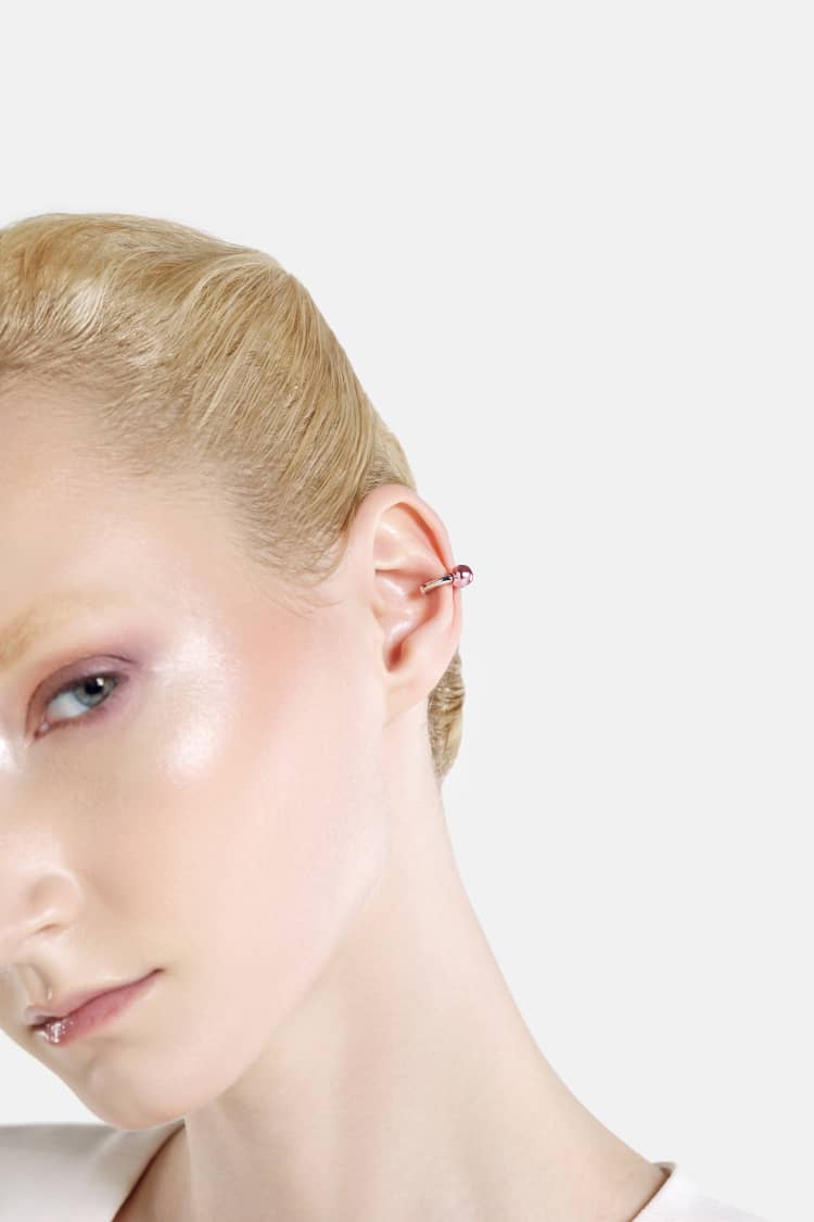 Discover Casa Batlló huggie earcuff, handcrafted jewelry in sterling silver and rose finish, architectural elegance hugging your ear with Gaudí-inspired sparkle.