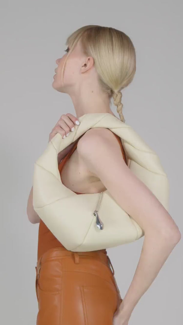 Beige leather handbag