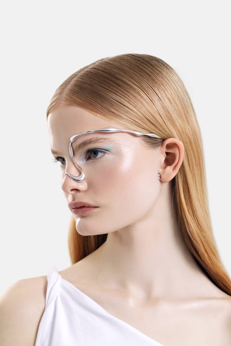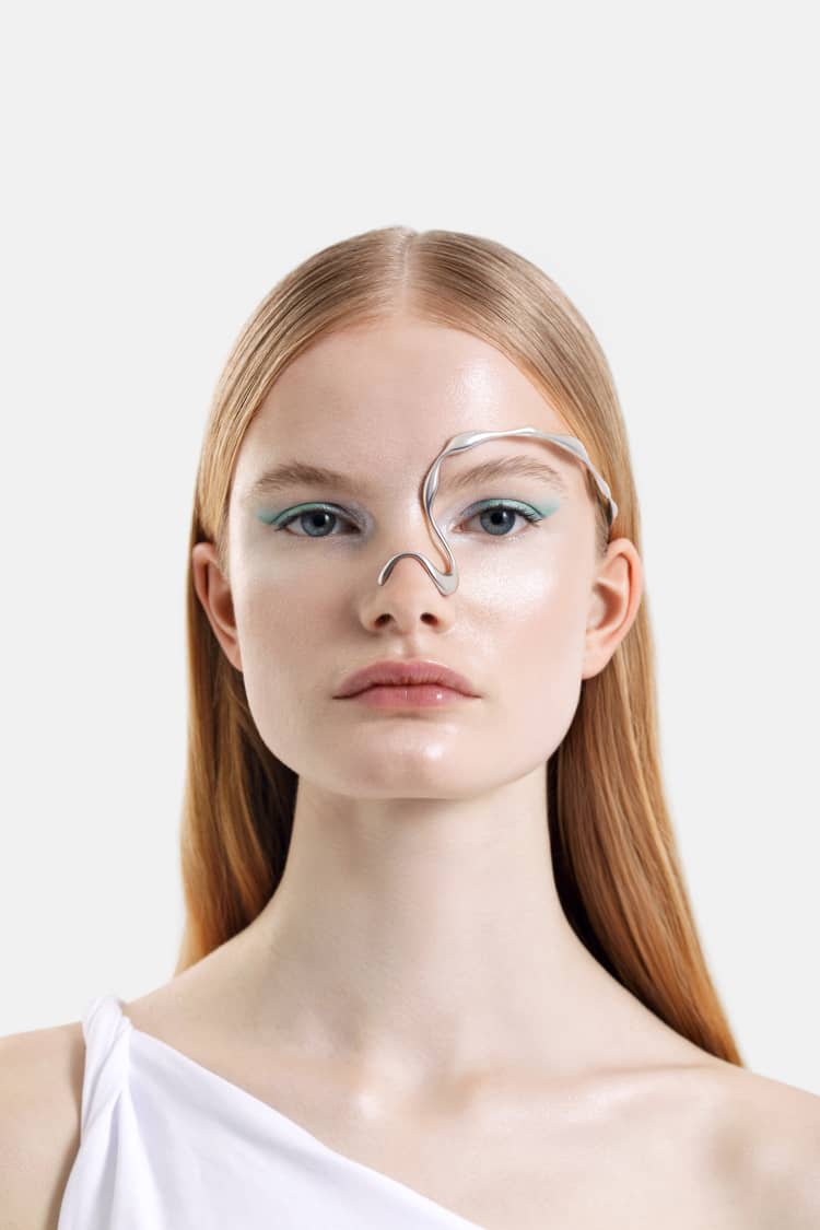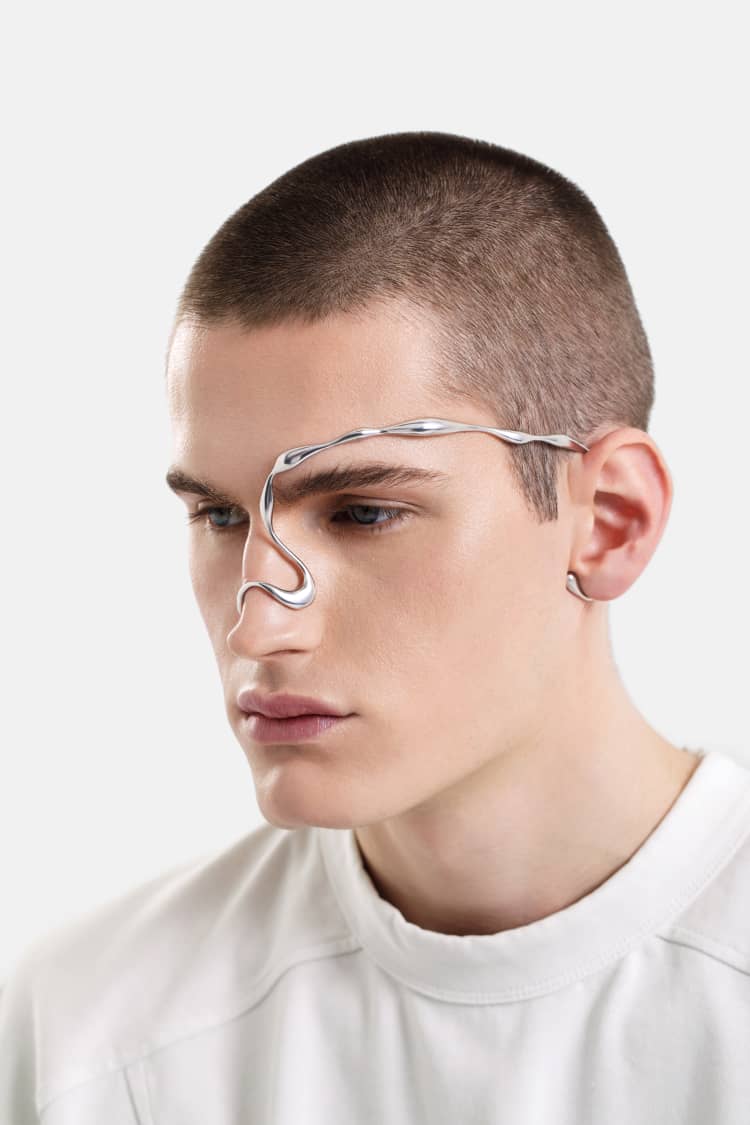 organic-shaped face jewelry in silver