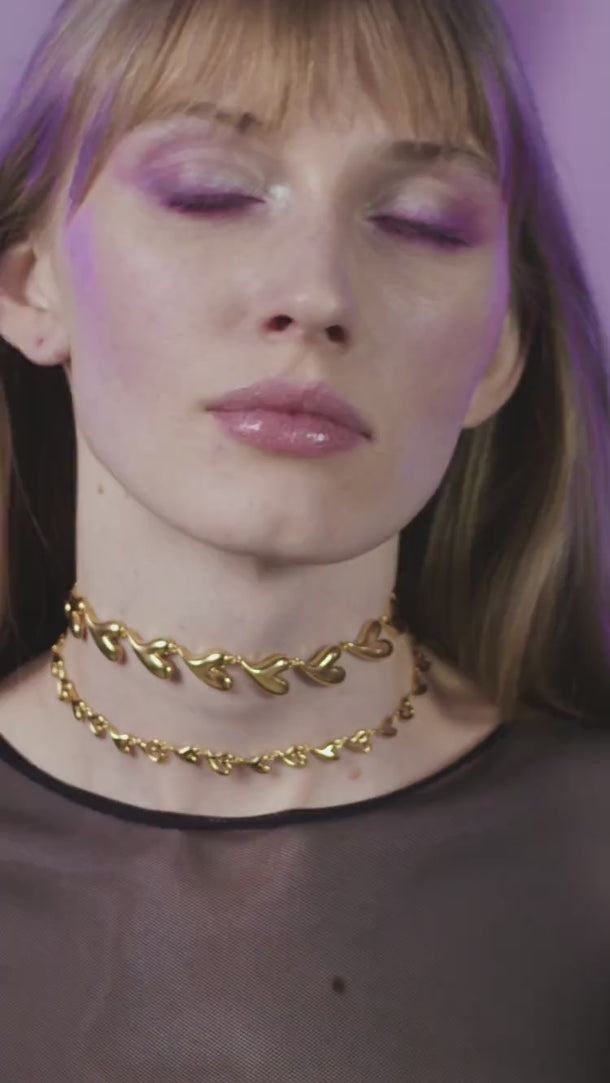 Gold Heart Choker Chain Set
