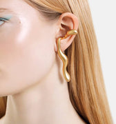 gold liquid earrings that hook around the ears